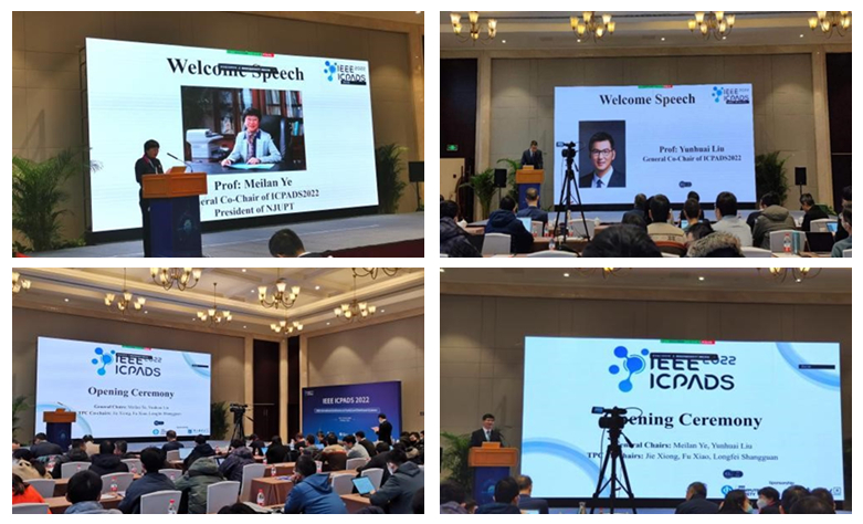 1月10-12日,第28届IEEE并行与分布式系统国际会议(IEEE International Conference on Parallel and Distributed Systems,ICPADS2022)在南京召开。ICPADS是并行与分布式系统领域最重要的年度盛会之一。本次会议由IEEE主办、南京邮电大学承办。我校校长、大会共同主席叶美兰教授和北京大学教授、大会共同主席刘云淮分别为大会致辞。我校肖甫教授主持开幕式。