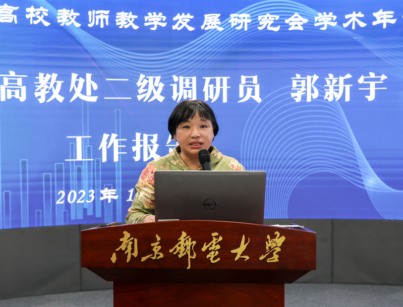 本次年会主题为“创新教师教学发展模式、夯实基层教学组织建设,打造新时代高质量教师队伍”,旨在深入学习贯彻党的二十大精神,落实习近平总书记关于教育的重要论述和全国教育大会工作部署,推动新时代全省高校教师教学发展工作高质量发展。孙力娟副校长代表学校对此次年会的召开表示祝贺,向与会嘉宾表示欢迎和感谢。郭新宇调研员作题为《江苏加强基层教学组织建设提升教师教学能力的具体举措》的报告,结合2023年江苏省教师教学发展工作要点,从系统推进促发展、推进教学数字化等两个方面,对我省高校教师发展工作提出了新要求。