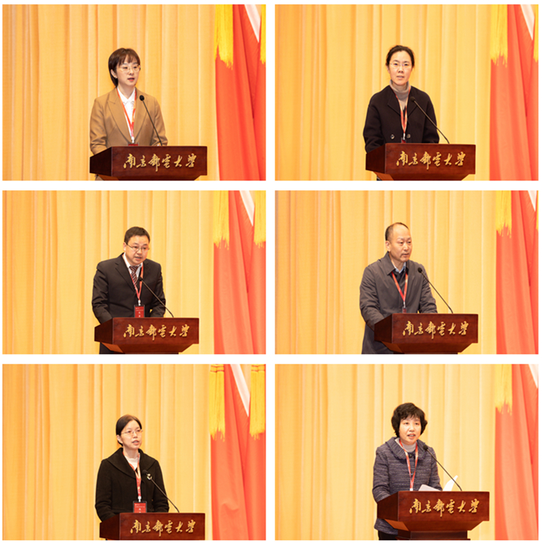 第六届教代会执委会副主任、校工会主席黄婷婷作第六届教代会执委会工作报告。第六届教代会提案工作委员会副主任、组织部部长谢平作2022年提案工作报告。招生就业处处长范结兵作2022年招生就业工作报告。财务处处长张进作2022年财务工作报告。发展规划处处长胡纵宇作《南京邮电大学章程》修订工作报告。