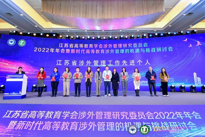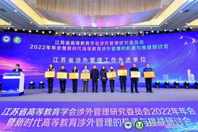 2月23-24日,江苏省高等教育学会涉外管理研究委员会2022年年会暨新时代高等教育涉外管理的机遇与挑战研讨会在镇江举办。会议表彰了2022年涉外管理工作先进单位和个人,我校获评2022年度“江苏省涉外管理工作先进单位”,这是我校近年来第五次获此项殊荣。国际合作交流处程丰宁老师获“江苏省涉外管理工作先进个人”称号。