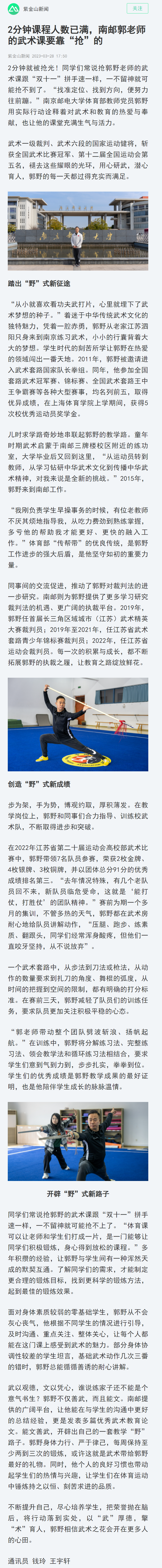 【南京日报客户端】2分钟课程人数已满,南邮郭老师的武术课要靠“抢”的