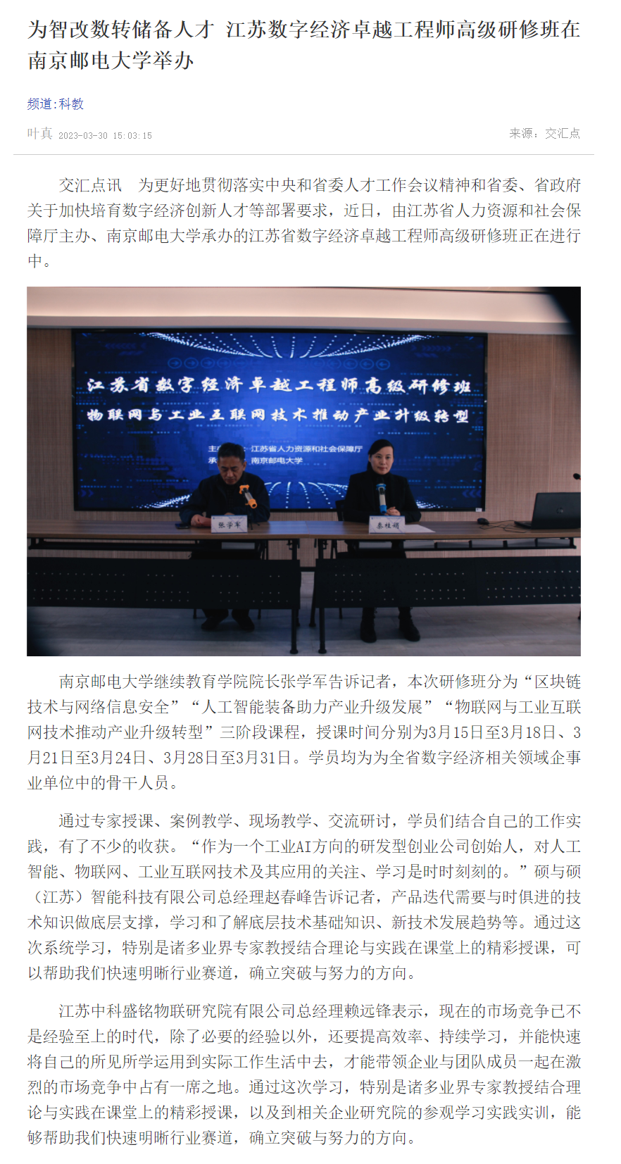 【新华日报客户端】为智改数转储备人才 江苏数字经济卓越工程师高级研修班在南京邮电大学举办