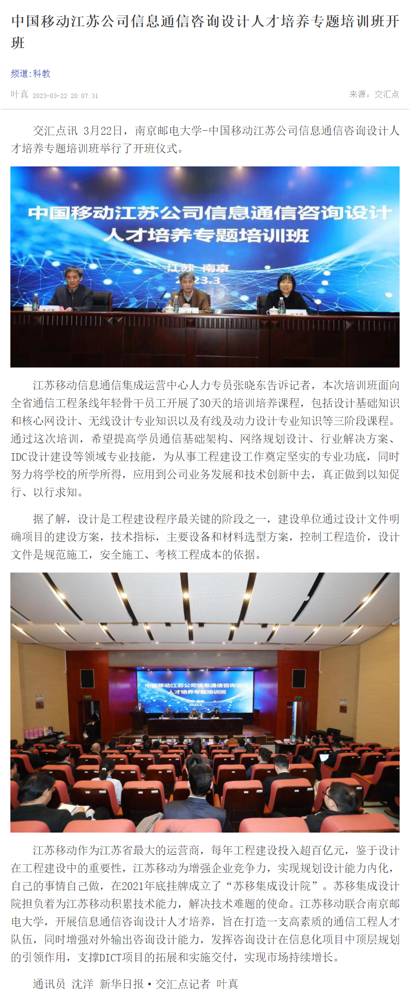 【新华日报客户端】中国移动江苏公司信息通信咨询设计人才培养专题培训班开班
