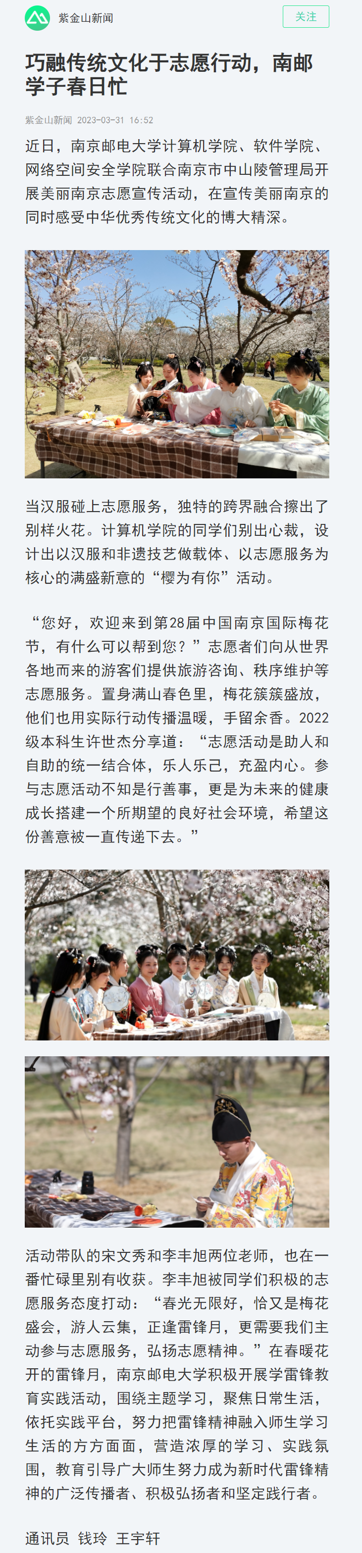 【南京日报客户端】巧融传统文化于志愿行动,南邮学子春日忙