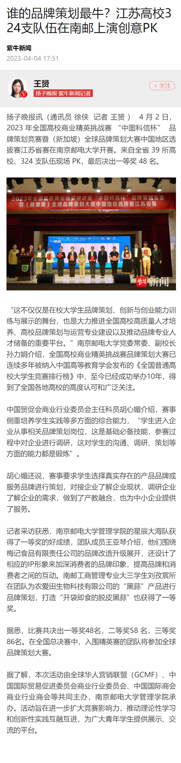 【扬子晚报客户端】谁的品牌策划最牛?江苏高校324支队伍在南邮上演创意PK