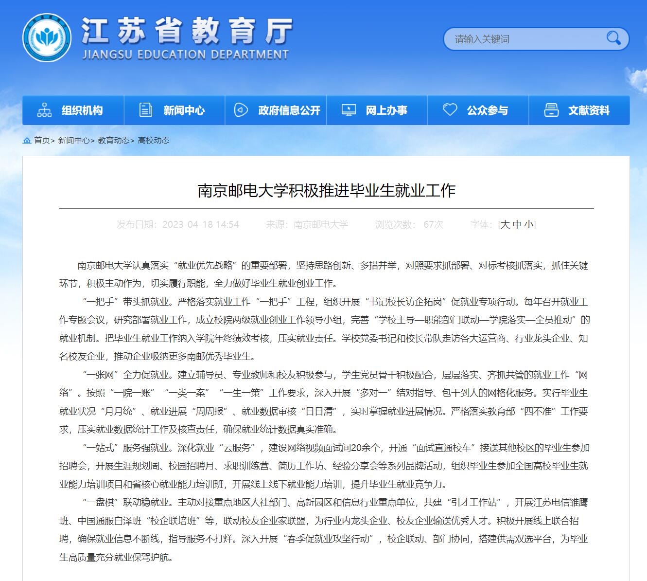 【省教育厅官网】南京邮电大学积极推进毕业生就业工作