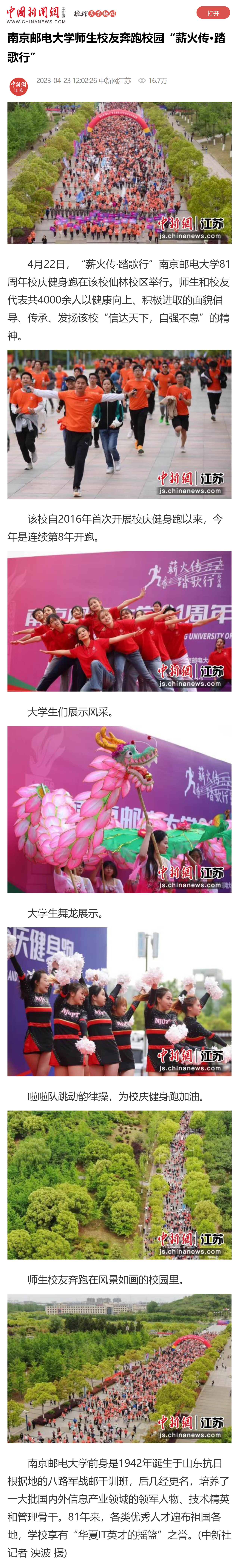 【中国新闻网】南京邮电大学师生校友奔跑校园“薪火传·踏歌行”