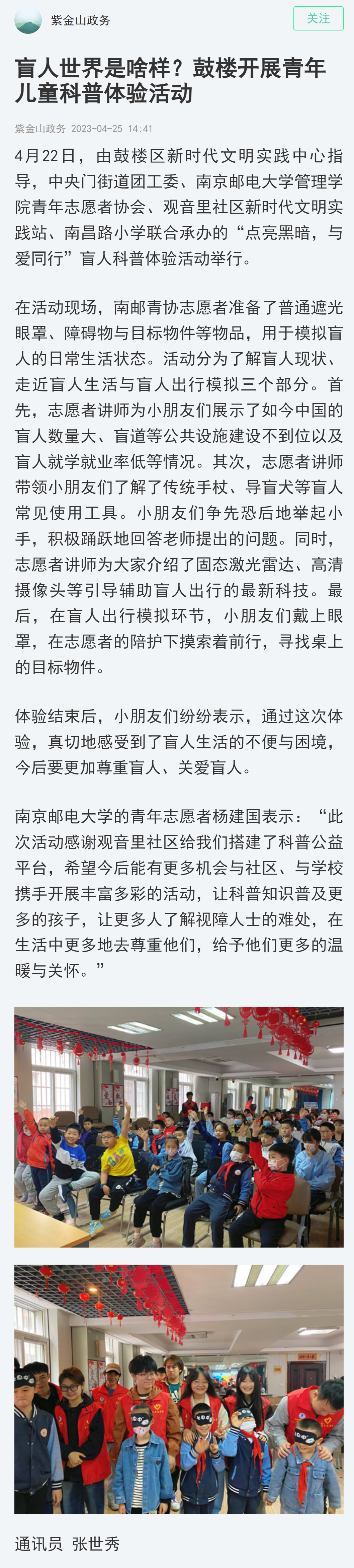 【南京日报客户端】盲人世界是啥样?鼓楼开展青年儿童科普体验活动
