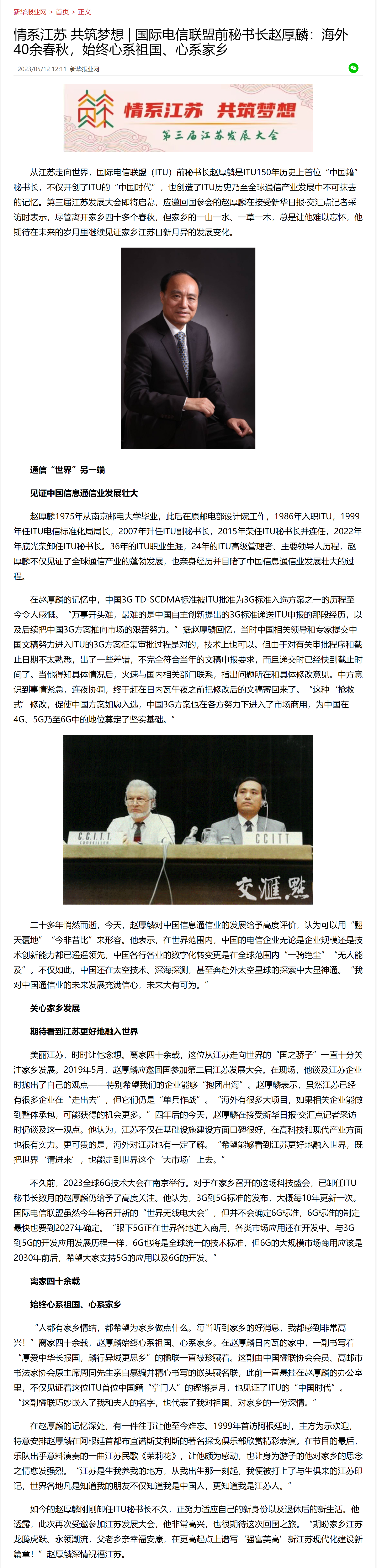【新华报业网】国际电信联盟前秘书长赵厚麟:海外40余春秋,始终心系祖国、心系家乡