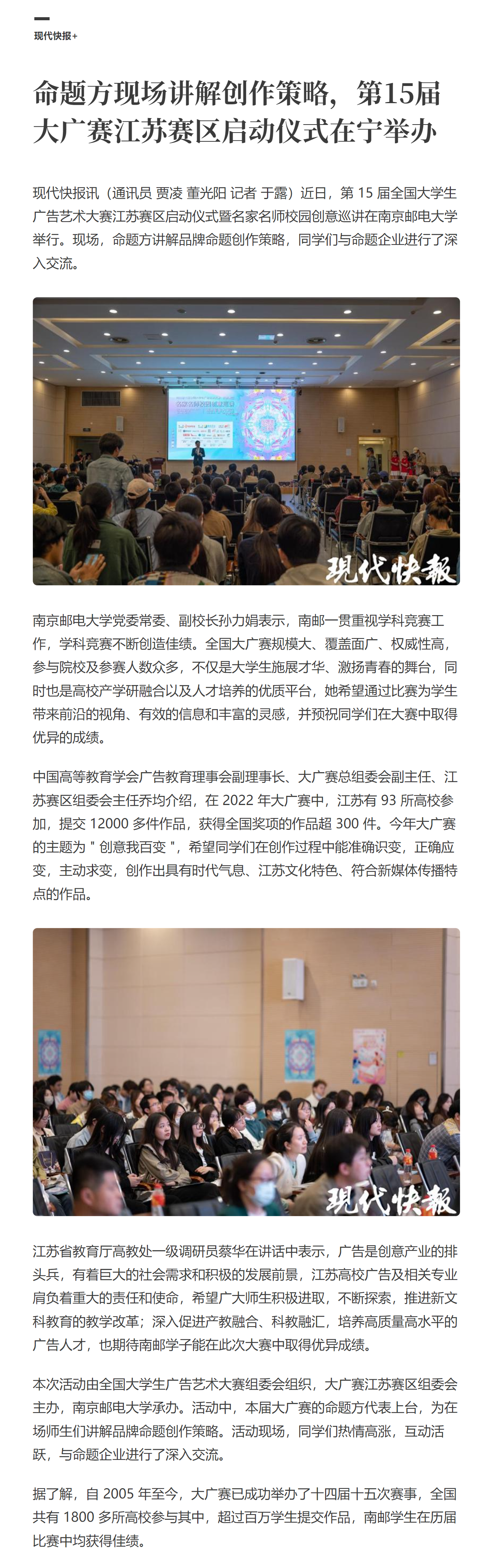 【现代快报全媒体】命题方现场讲解创作策略,第15届大广赛江苏赛区启动仪式在宁举办