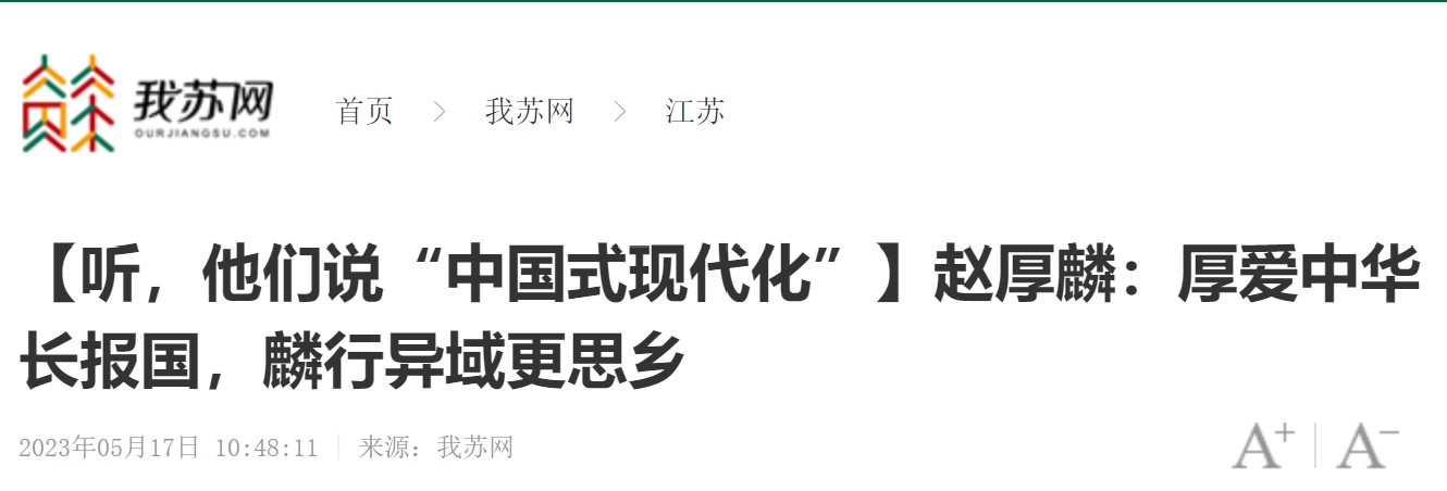 【我苏网】赵厚麟:厚爱中华长报国,麟行异域更思乡