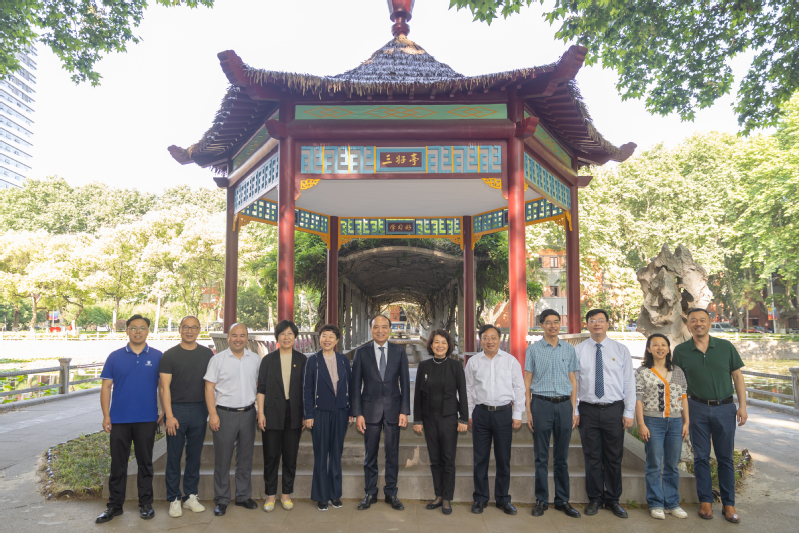 赵厚麟一行还参观了李味青艺术馆,在相关负责人的介绍中,他感受到浓厚的校园文化底蕴,挥毫题写“南邮也有书卷气”书法作品并赠予学校。在参观校园时,赵厚麟看着眼前的一草一木,深情款款地回忆与南邮“相爱”的一点一滴。在三好亭里,他讲述了当年有趣的故事;在无线楼旁,他感恩师长们的谆谆教诲;在有线楼前,他追忆美好的课堂时光。赵厚麟饱含深情地说道,虽然他身处海外,但内心中对学校那份情谊愈发浓厚。
