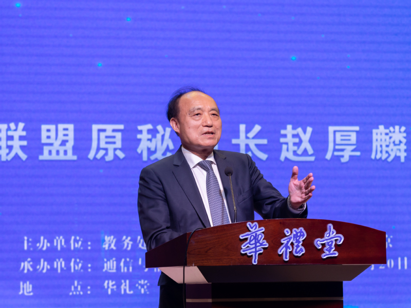 我校1972级校友、国际电信联盟原秘书长、通信与信息工程学院名誉院长赵厚麟给师生作报告