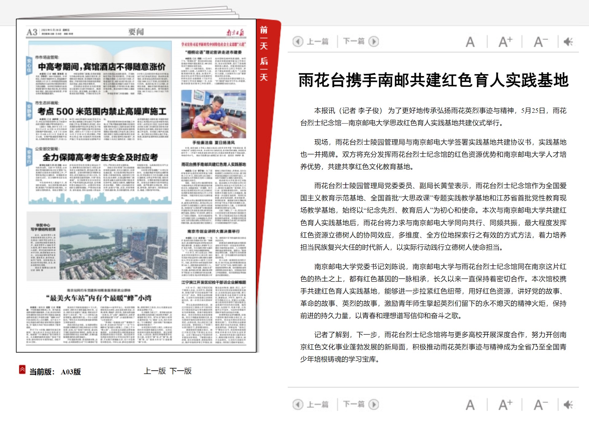 【南京日报】雨花台携手南邮共建红色育人实践基地
