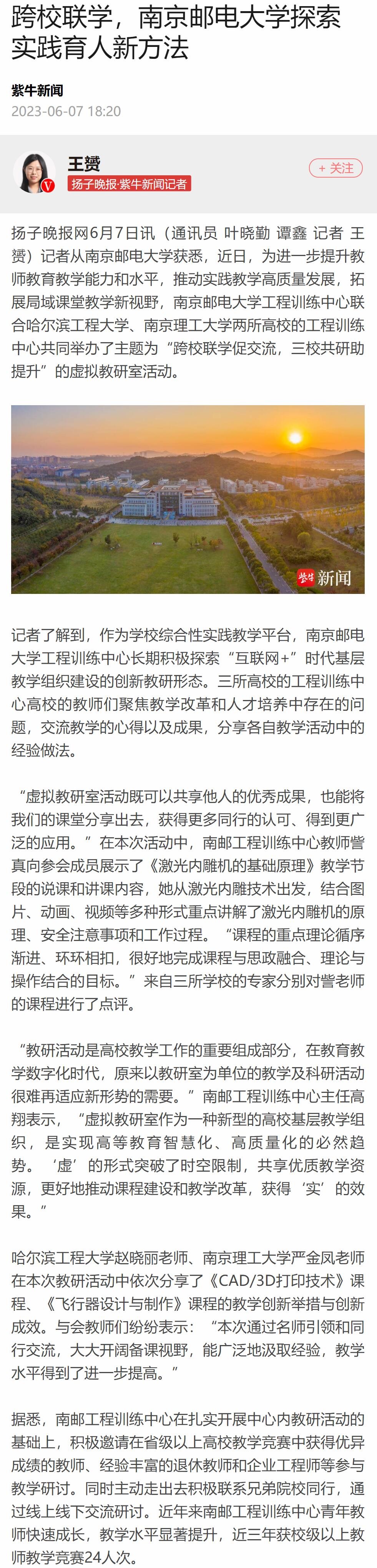 【扬子晚报客户端】跨校联学,南京邮电大学探索实践育人新方法