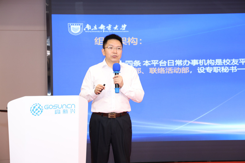 高新兴科技集团党委书记、董事、1981级校友黄国兴,广州嘉音讯通讯有限公司总裁、1989级校友倪梅端分别作南京邮电大学广东校友联络平台筹备工作报告,宣读《南京邮电大学广东校友联络平台管理办法 (草案)》。