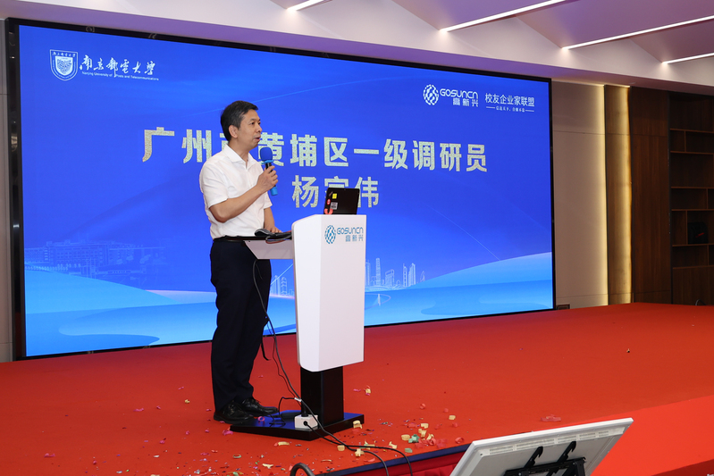 广州市工信局黄星耀副局长对南邮广东校友联络平台成立表示祝贺。他介绍了广州数字经济领域的相关布局和制造业立市的发展战略,强调智能装备制造业在广东的重要作用,希望南邮校友趁着制造业立市的东风,参与建设发展,为企业创造商机,为广州高质量发展注入新动力和新活力。