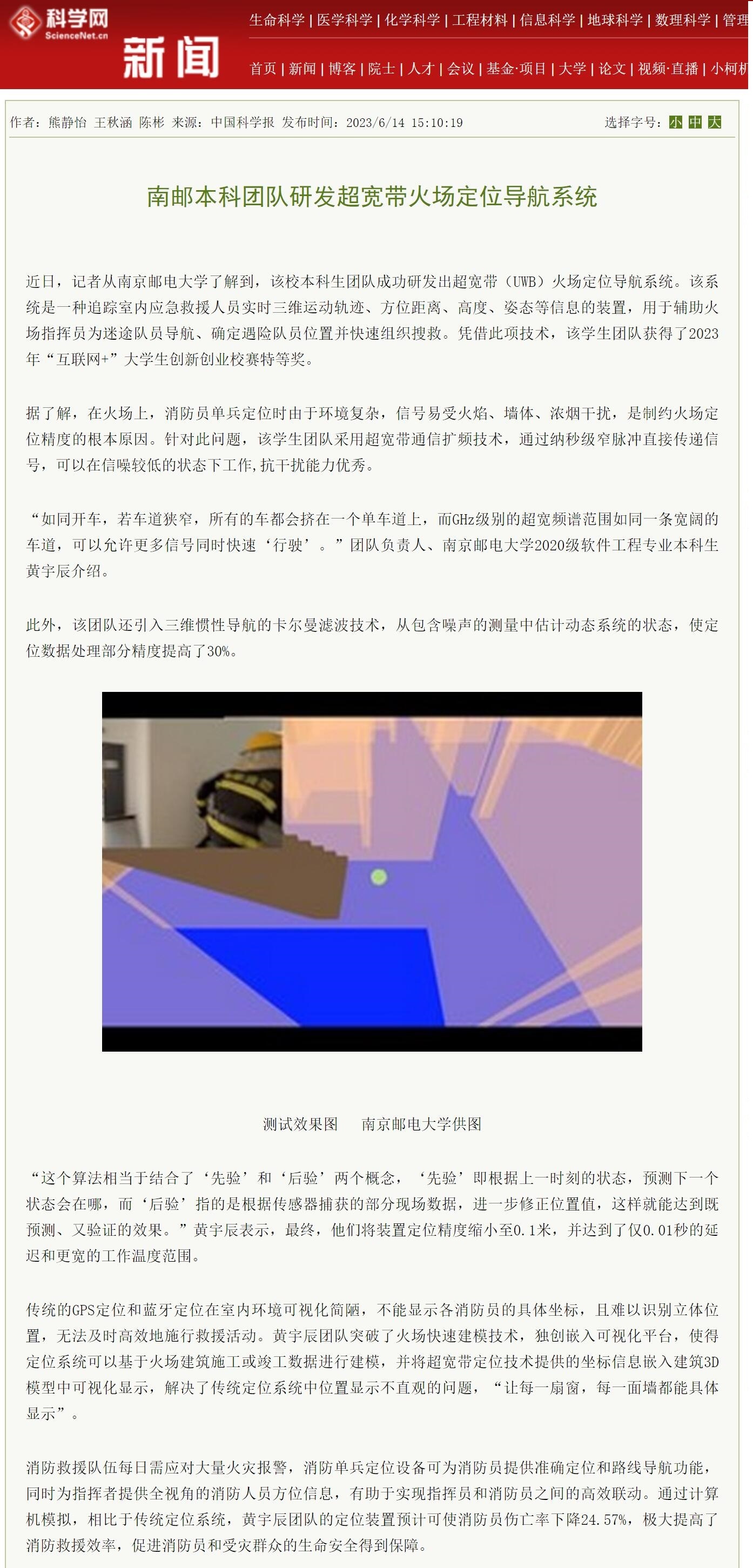 【科学网】南邮本科团队研发超宽带火场定位导航系统