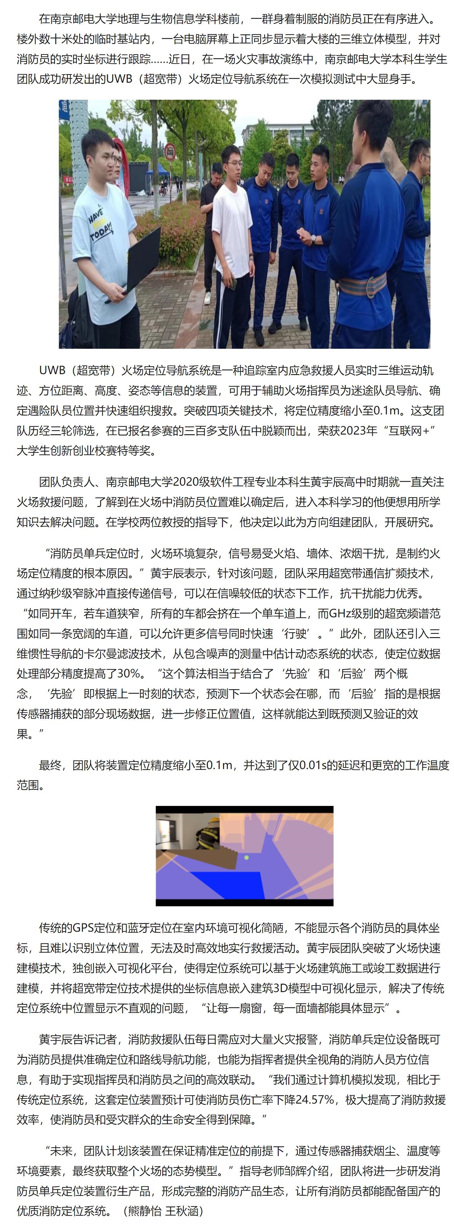 【中国江苏网】为消防员保驾护航 南邮学子研发UWB火场定位导航系统
