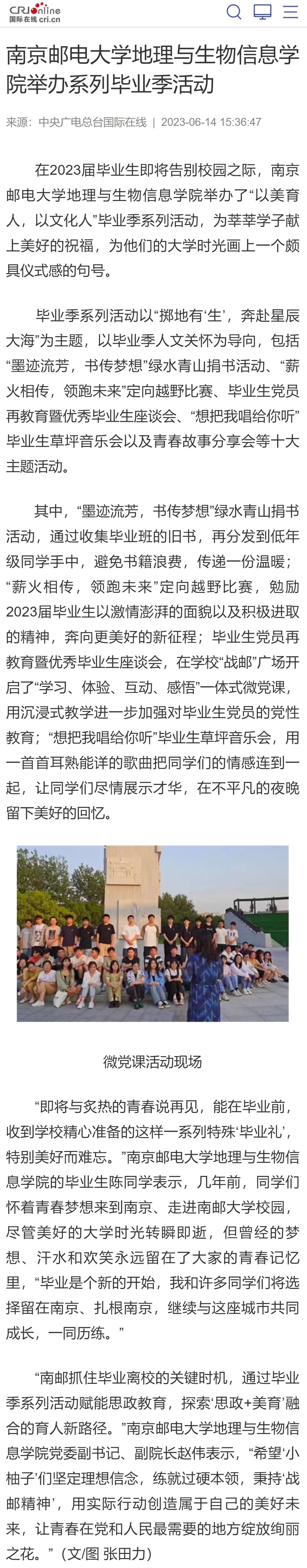 【中央广电总台国际在线】南京邮电大学地理与生物信息学院举办系列毕业季活动