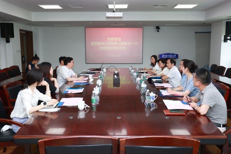 刘青山副校长感谢姜斌副校长的热情接待。他说,南京航空航天大学作为国家“双一流”建设高校,在一流学科建设、国际化人才培养、国际化师资队伍建设、国际化平台方面已经迈上了新台阶。两校的学科基础深厚、行业特色鲜明,在国际化办学实践方面可以取长补短、互学互鉴。通过此次调研,南邮更深入地了解了兄弟院校在国际化引领学科建设、科研合作、人才培养、制度建设等方面的特色做法和先进经验。希望以此为契机,两校加强沟通交流,破解国际化发展中的共性问题,推动学校新一轮“双一流”建设和高质量发展。