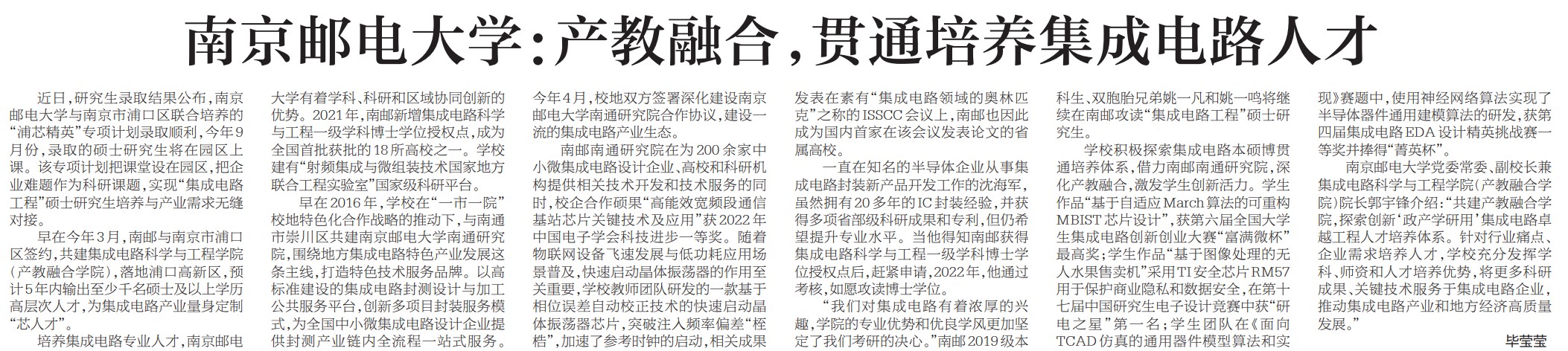 【新华日报】南京邮电大学:产教融合,贯通培养集成电路人才