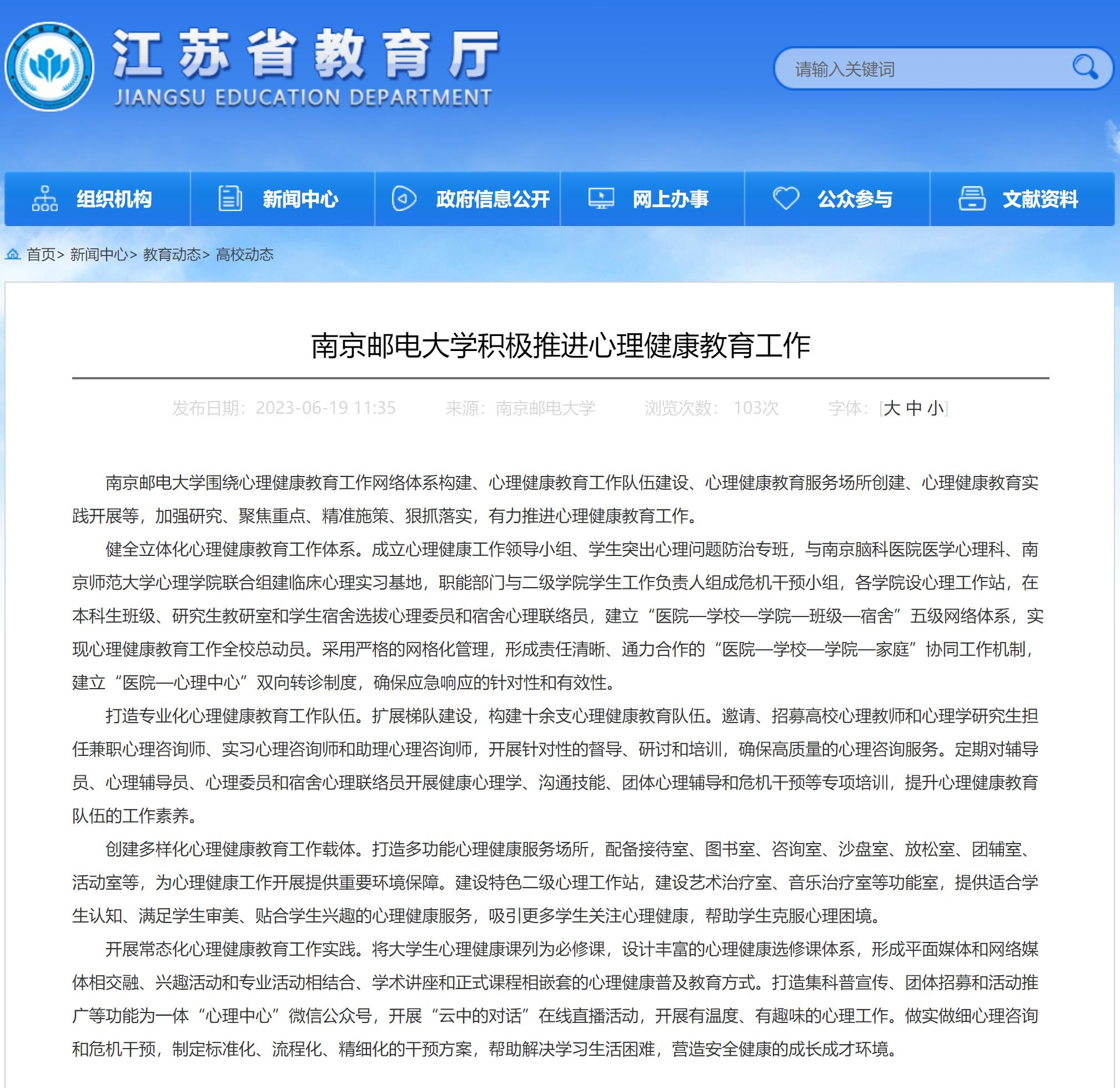 【省教育厅官网】南京邮电大学积极推进心理健康教育工作