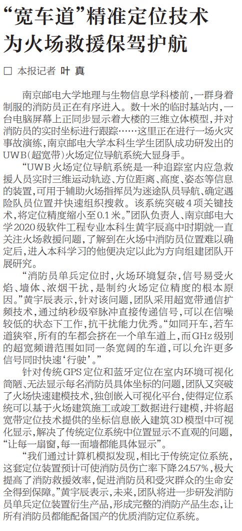 【新华日报】“宽车道”精准定位技术为火场救援保驾护航