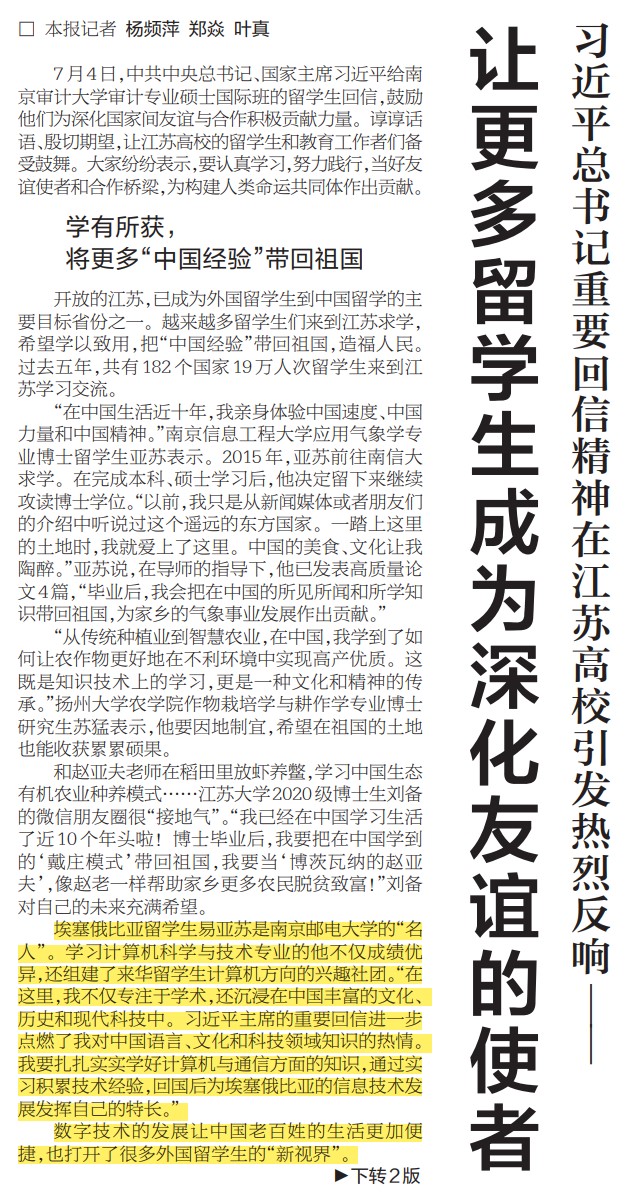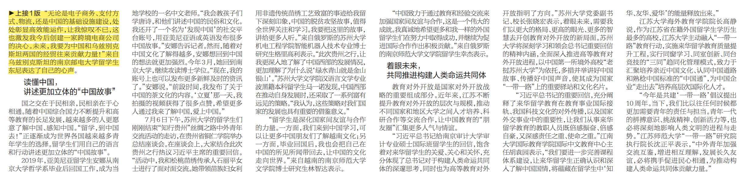 【新华日报】让更多留学生成为深化友谊的使者