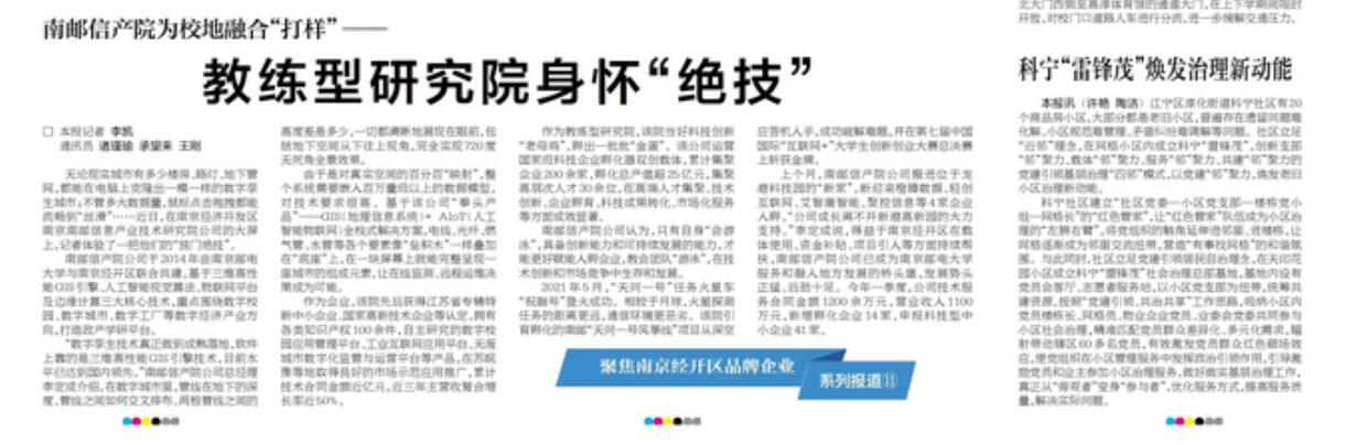 【新华日报】南邮信产院为校地融合“打样” ——教练型研究院身怀“绝技”