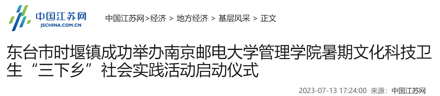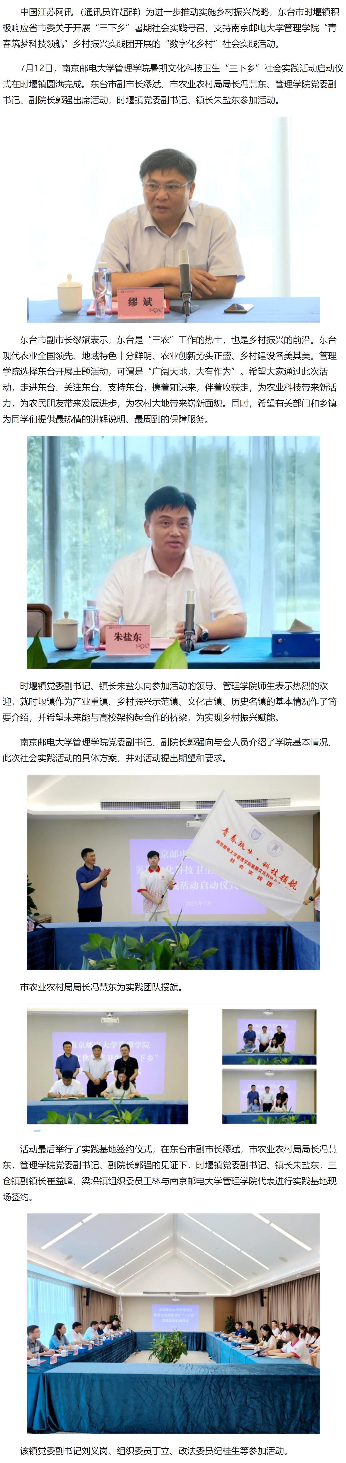 【中国江苏网】东台市时堰镇成功举办南京邮电大学管理学院暑期文化科技卫生“三下乡”社会实践活动启动仪式