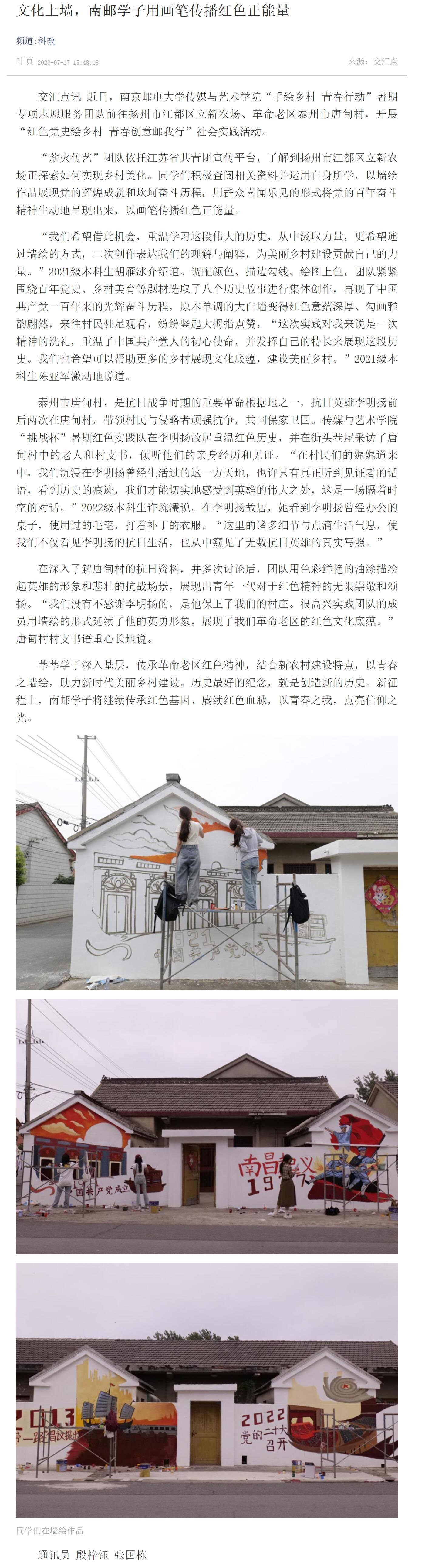 【新华日报客户端】文化上墙,南邮学子用画笔传播红色正能量