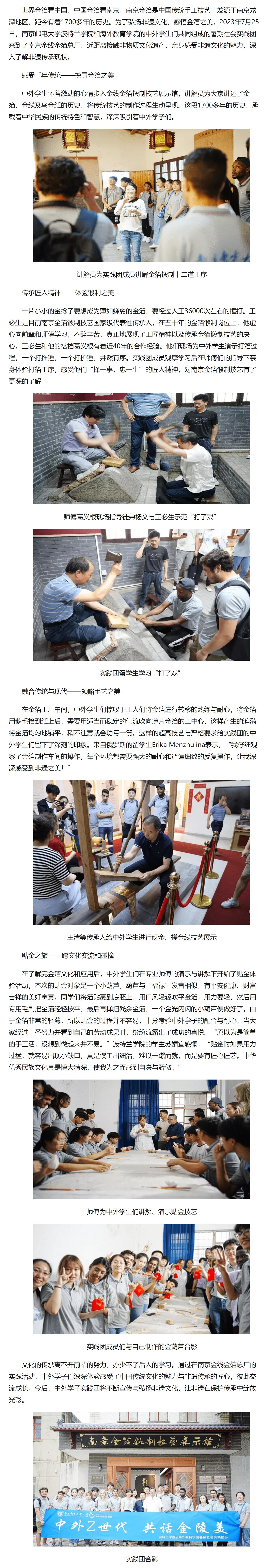 【中国江苏网】南京邮电大学中外学子赴南京金线金箔总厂开展社会实践活动