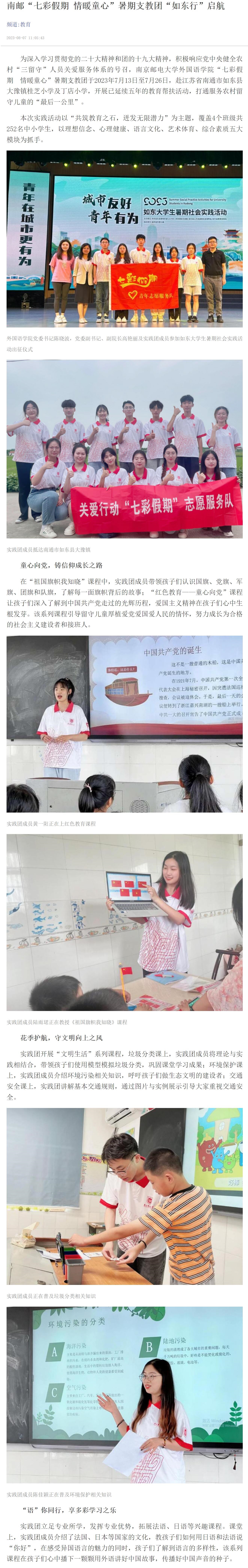 【新华日报客户端】南邮“七彩假期 情暖童心”暑期支教团“如东行”启航
