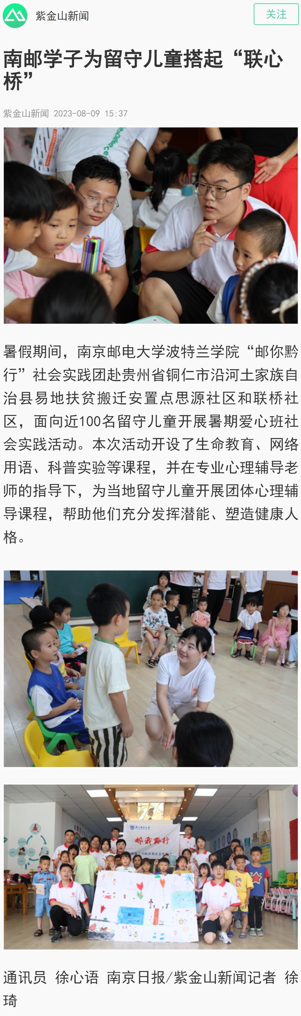 【南京日报客户端】南邮学子为留守儿童搭起“联心桥”