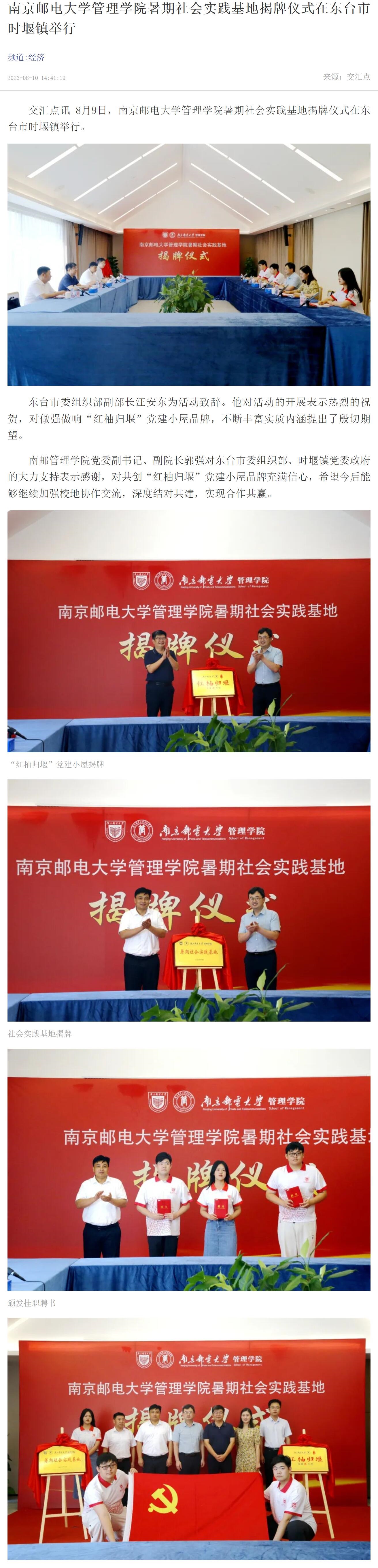 【新华日报客户端】南京邮电大学管理学院暑期社会实践基地揭牌仪式在东台市时堰镇举行