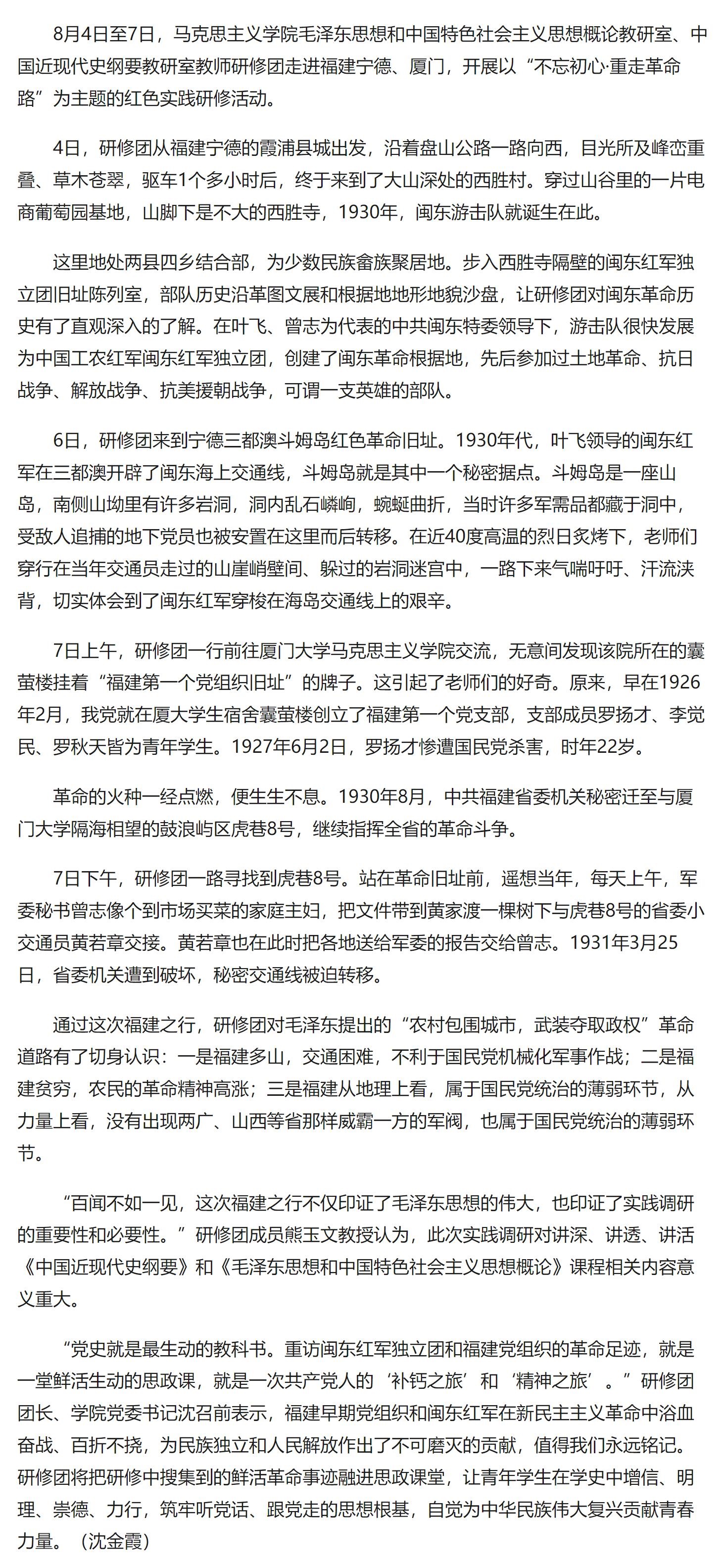 【中国江苏网】南京邮电大学马克思主义学院教师赴闽开展“重走革命路”红色研修活动