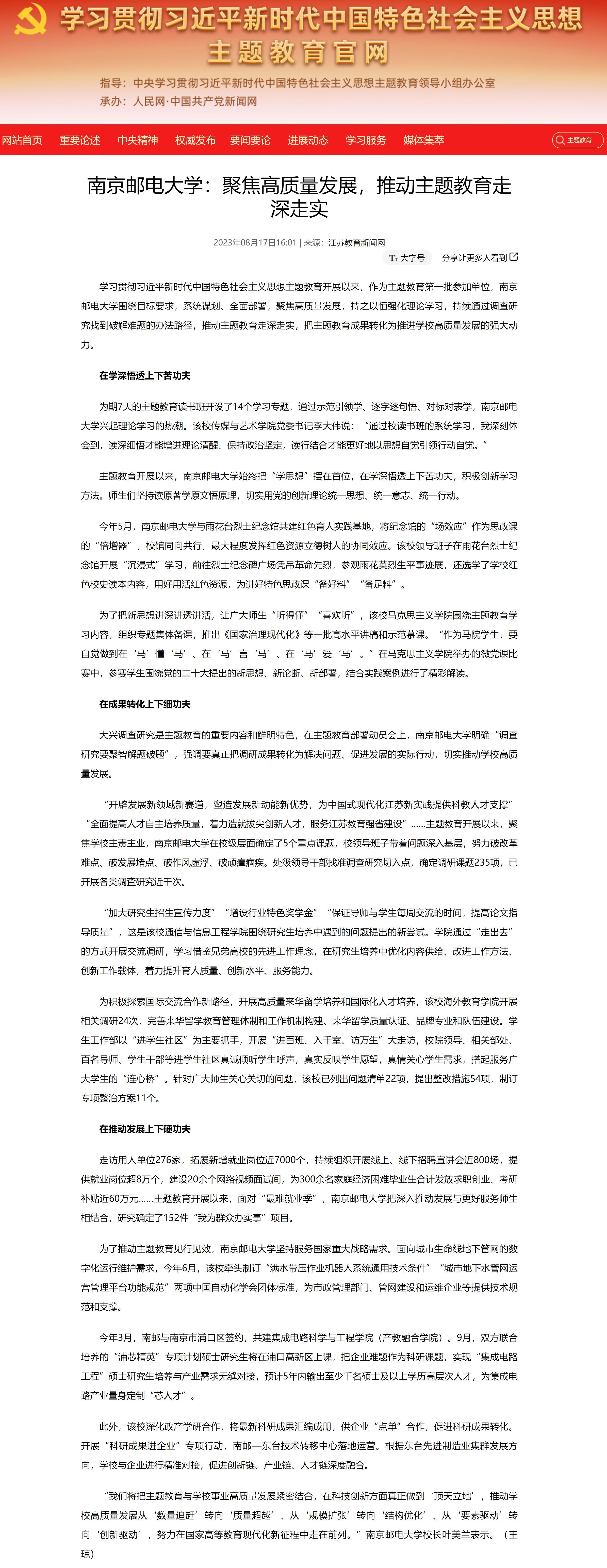 【主题教育官网】南京邮电大学:聚焦高质量发展,推动主题教育走深走实