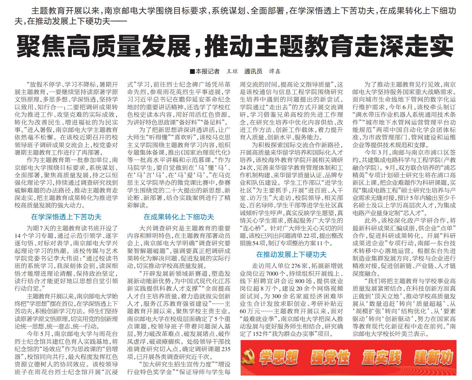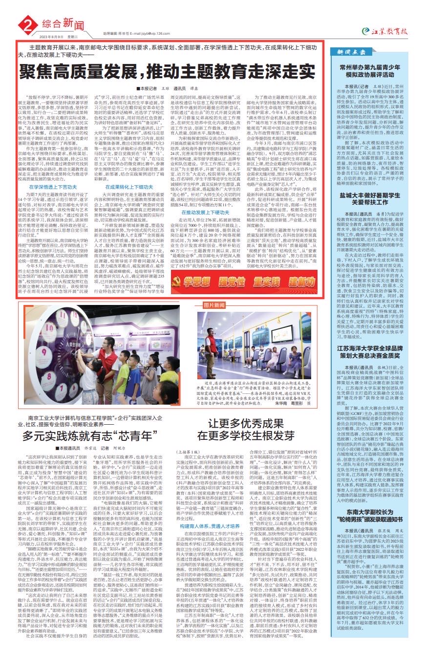 【江苏教育报】聚焦高质量发展,推动主题教育走深走实