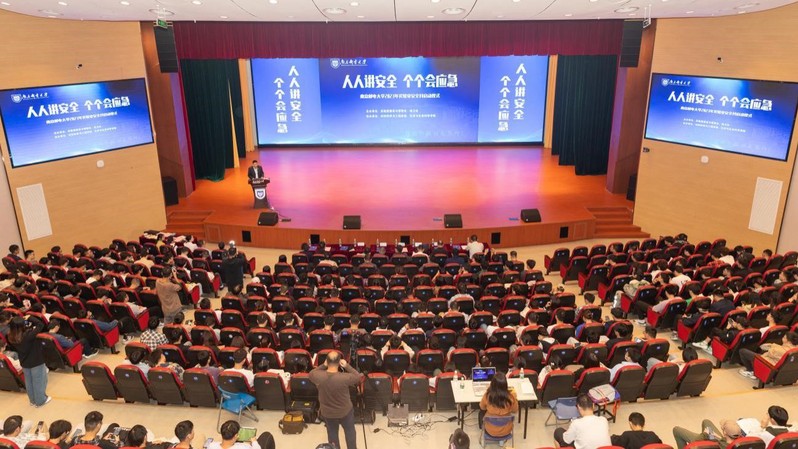 10月10日下午,我校首届实验室安全月启动仪式在仙林校区安恒青春剧场拉开帷幕。此次实验室安全月的主题为“人人讲安全、个个会应急”。副校长赵强,仙林大学城管委会副主任张弨,南京市公安局治安管理局副局长周向阳出席开幕式,相关职能部门、学院负责人,师生代表参加启动仪式和安全知识讲座。