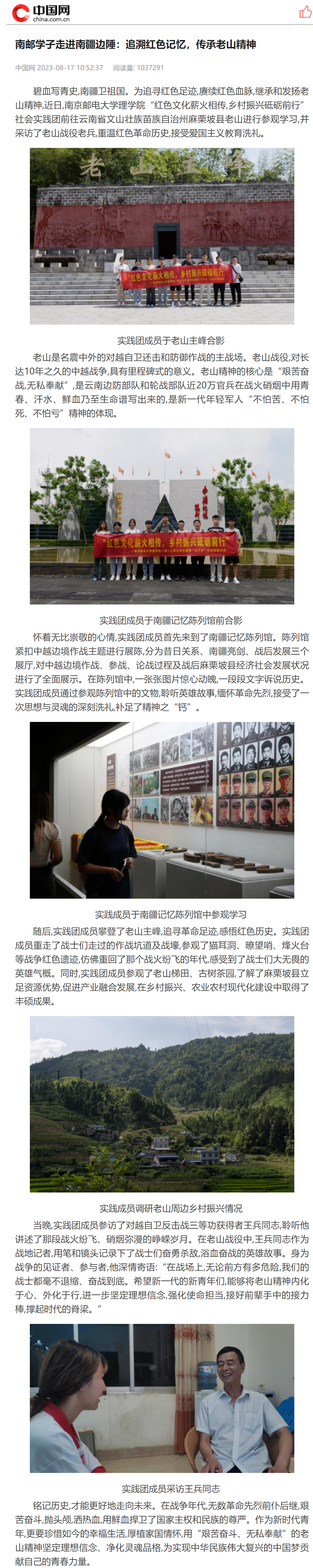 【中国网】南邮学子走进南疆边陲:追溯红色记忆,传承老山精神