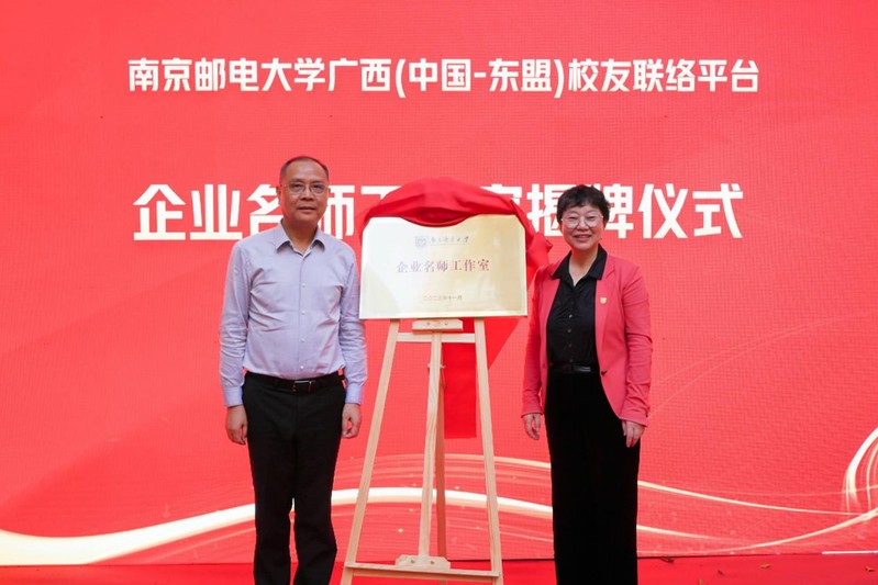 为深入实施“时代新人铸魂工程”,进一步优化辅导员队伍建设,学校聘请叶松华校友、郑勇校友担任校外辅导员。叶美兰校长和南邮广西(中国-东盟)校友联络平台总负责人叶松华校友共同为企业名师工作室揭牌。