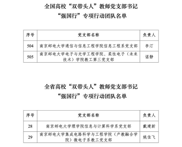 南邮4个党支部入选高校“双带头人”教师党支部书记“强国行”专项行动团队