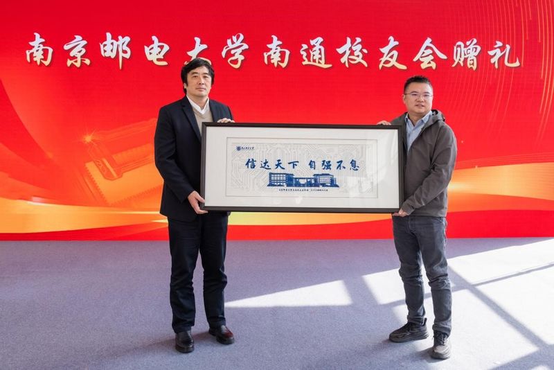活动现场举行了江苏省卓越研究生工作站、崇川区集成电路(电子信息)产业链红芯集成驿站、南京邮电大学新一代信息技术概念验证中心南通分中心揭牌仪式。我校南通校友会向南通研究院捐赠了沈绣作品,表达了对母校和南通研究院未来发展的美好祝愿。