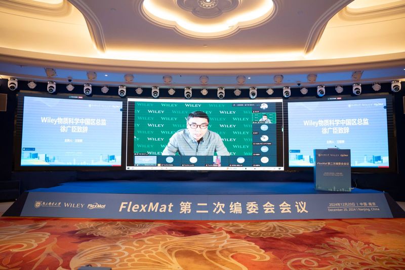 FlexMat第二次编委会特邀中国科学院院士、东南大学教授崔铁军,中国科学院院士、清华大学教授李景虹,中国科学院院士、东华大学教授朱美芳,中国科学院院士、南京大学教授顾宁,中国科学院院士、哈尔滨工业大学教授冷劲松,南京大学教授孔德圣出席会议。Wiley出版集团市场部曹玮麟,副主编陈俊婷,出版人王沁怡,主编翁博,物质科学中国区总监徐广臣,出版经理张晓雨应邀参会。大会邀请江苏省科学技术协会学术部宋佳,南京邮电大学副校长王友国,副校长赵强,一流学科和高水平大学建设办公室、科学技术处、《南京邮电大学学报(自然科学版)》负责人以及西北工业大学、南京工业大学、厦门大学、南京信息工程大学、福建师范大学等兄弟高校的专家学者线上线下参会。