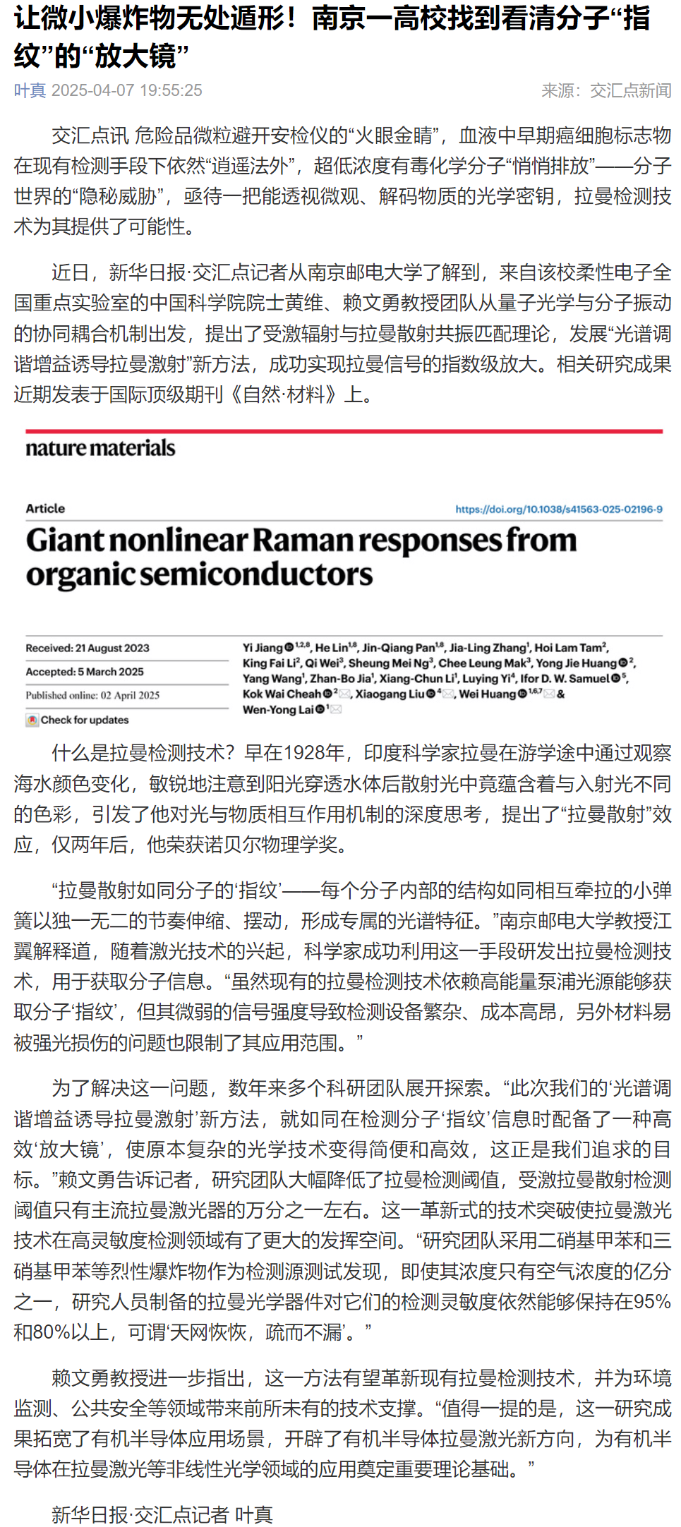 【新华日报客户端】让微小爆炸物无处遁形!南京一高校找到看清分子“指纹”的“放大镜”