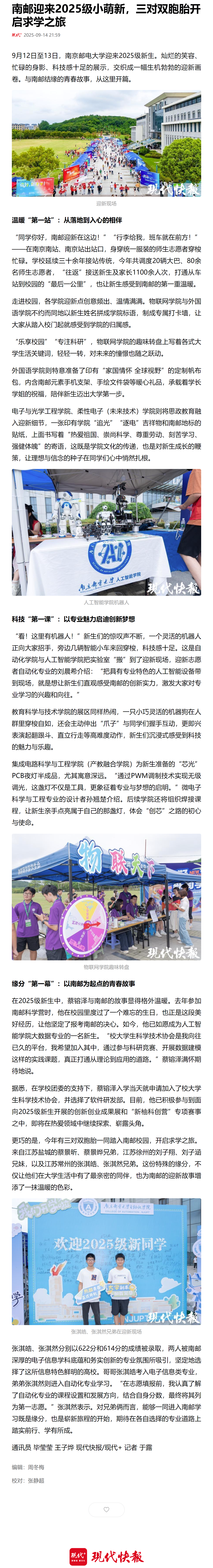 【现代快报全媒体】南邮迎来2025级小萌新,三对双胞胎开启求学之旅