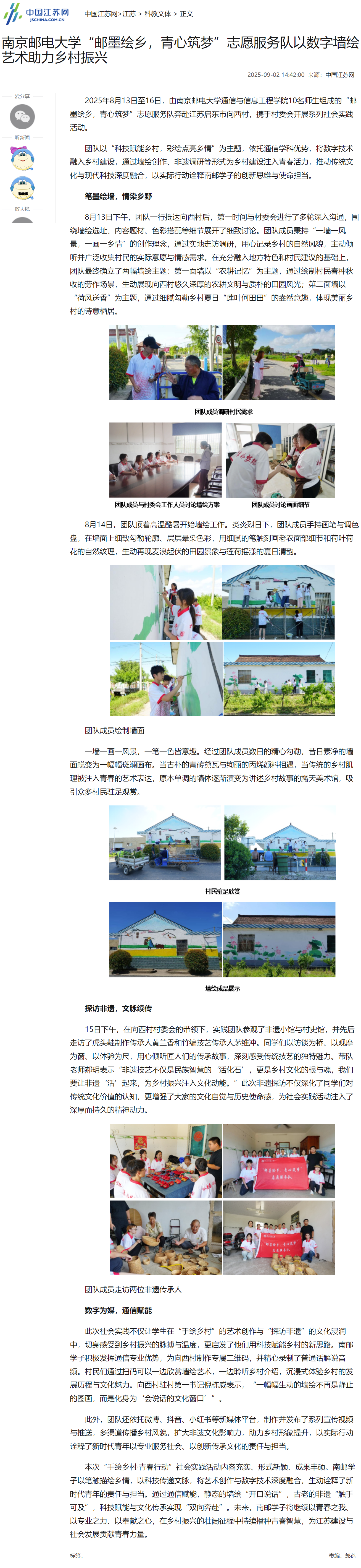 【中国江苏网】南京邮电大学“邮墨绘乡,青心筑梦”志愿服务队以数字墙绘艺术助力乡村振兴