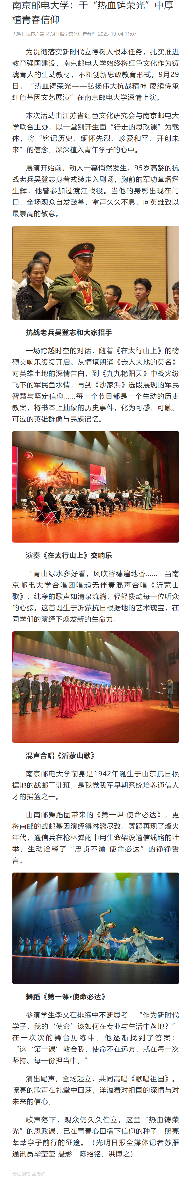 【光明日报客户端】南京邮电大学:于“热血铸荣光”中厚植青春信仰