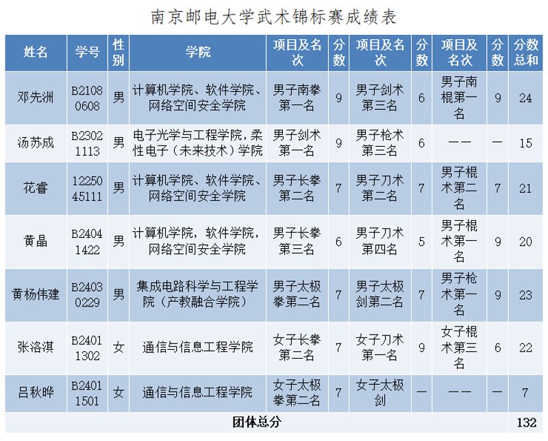 10月11—13日, 2025年江苏省大学生武术(套路)锦标赛在扬州大学举行。南京邮电大学武术队获甲B组团体总分第一名,收获6金7银4铜。